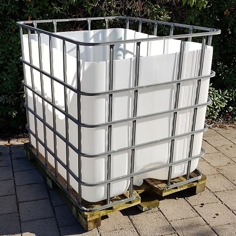 IBC Abfall-Container 1000l oder 1-Kubik Abfallmulde auf Holzpalette stark oder mehrfach gebraucht, ideal zum Entsorgen, empfohlen als Einweg