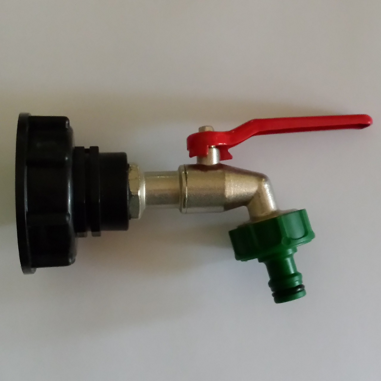 Passt auf IBC mit S60x6, etwa 60mm Grobgewinde am Auslauf-Hahn (häufig in der CH, meistens in der EU).