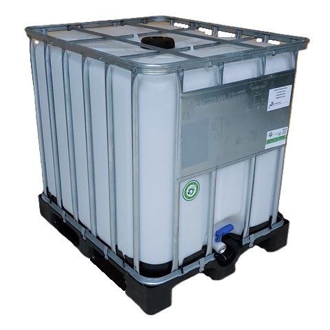 Der IBC wurde industriell von innen gereinigt, getrocknet und der Auslaufhahn neu versiegelt.