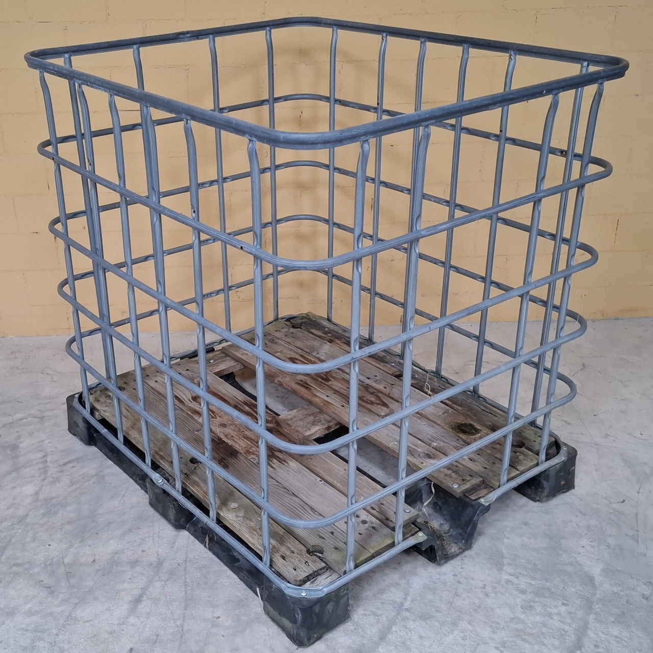 Breite IBC Gitterboxen auf Holzpalette mit Kunststoffkufen gebraucht